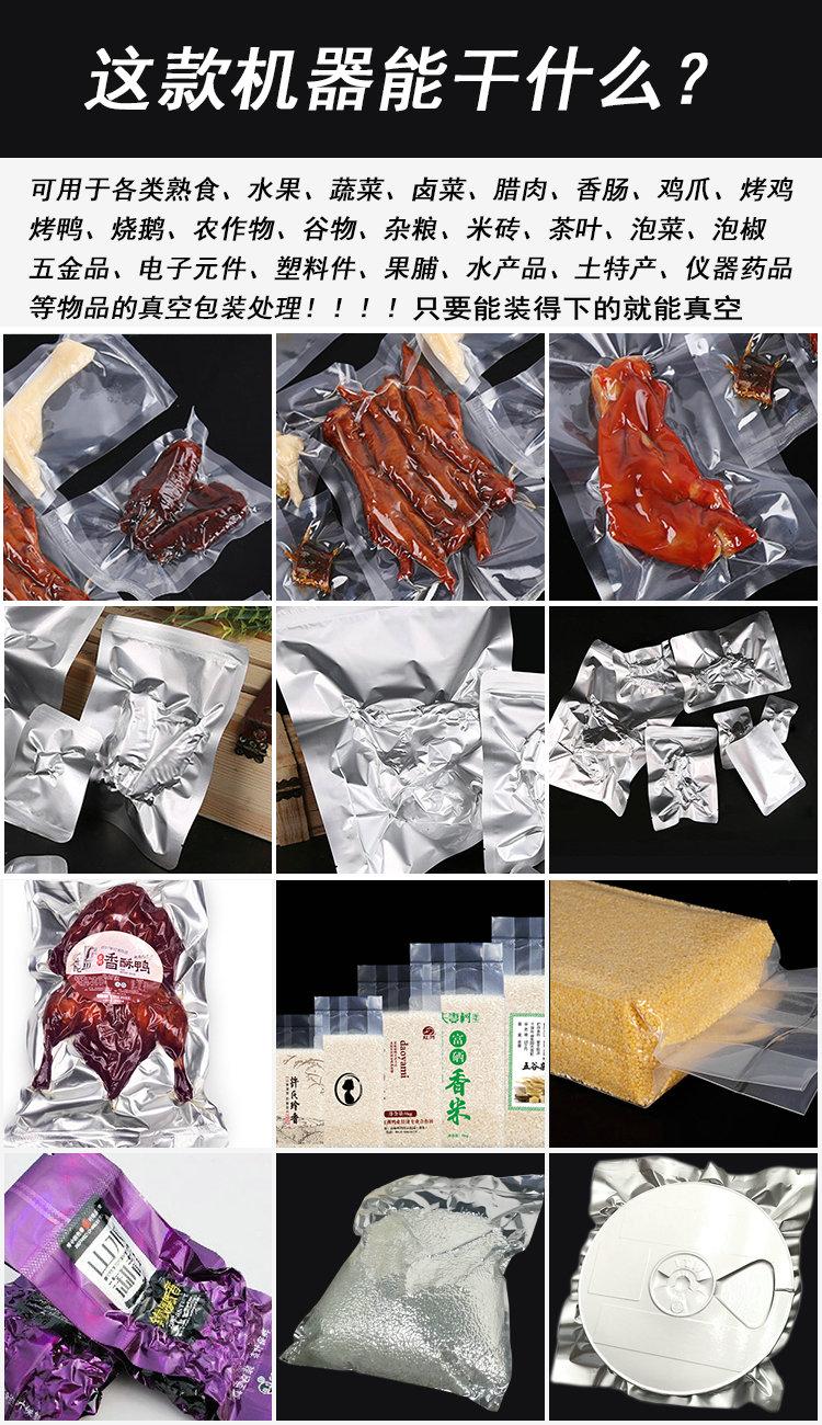 1、雙室真空包裝機適合用語各種軟包裝材料,塑料復合薄膜材料。