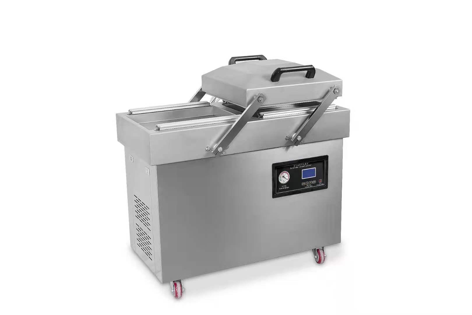 上海工廠生產的這款雙室真空包裝機是都是將產品放入袋子之后,抽出袋子的空氣,接著完成封口,冷卻動作。雙室真空包裝機主要是利用食物霉腐變質的原理把微生物(導制食品變質的元素)賴以生存的氧氣抽掉,從而達到,防霉腐及防氧化的功能。雙室真空包裝機為全不銹鋼設計,進口控制電器。